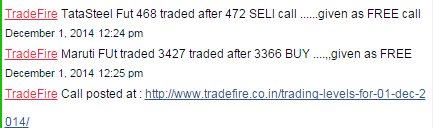 See chat logs for any positional call if any (We have given “TradeFire BUY JAN8500PE @94 TGT 150 200 250+ SL Nifty spot 8660 December 1, 2014 11:14 am”
