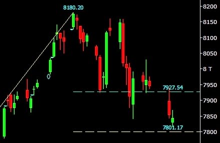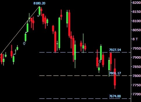 As per level given support at 7800, there was good rally from that support. For coming days be in BUY side till closing below 7800. Major support levels on closing basis are 7800-7700-7674-7535 and major resistance levels on the closing basis are 7904-7970-8030-8070- 8180-8252.